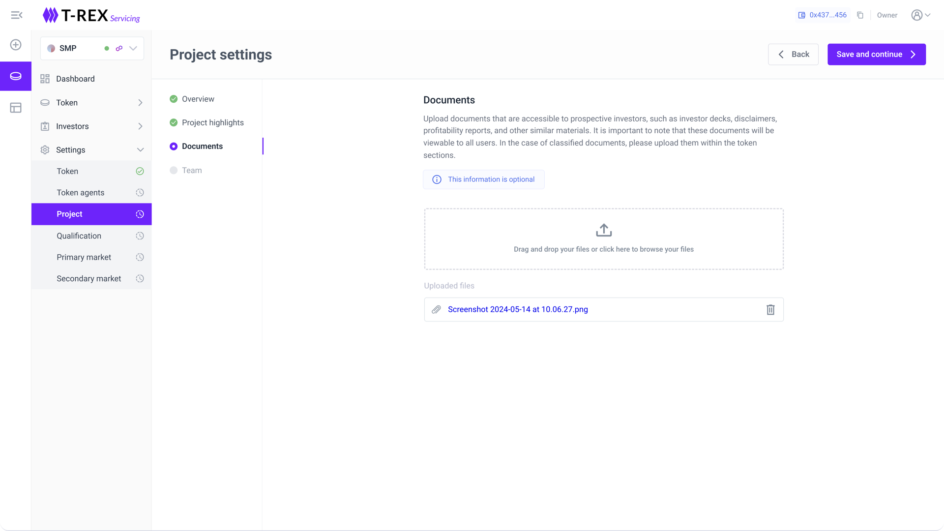 Documents are uploaded via Token > Documents; only PDF format is supported.
