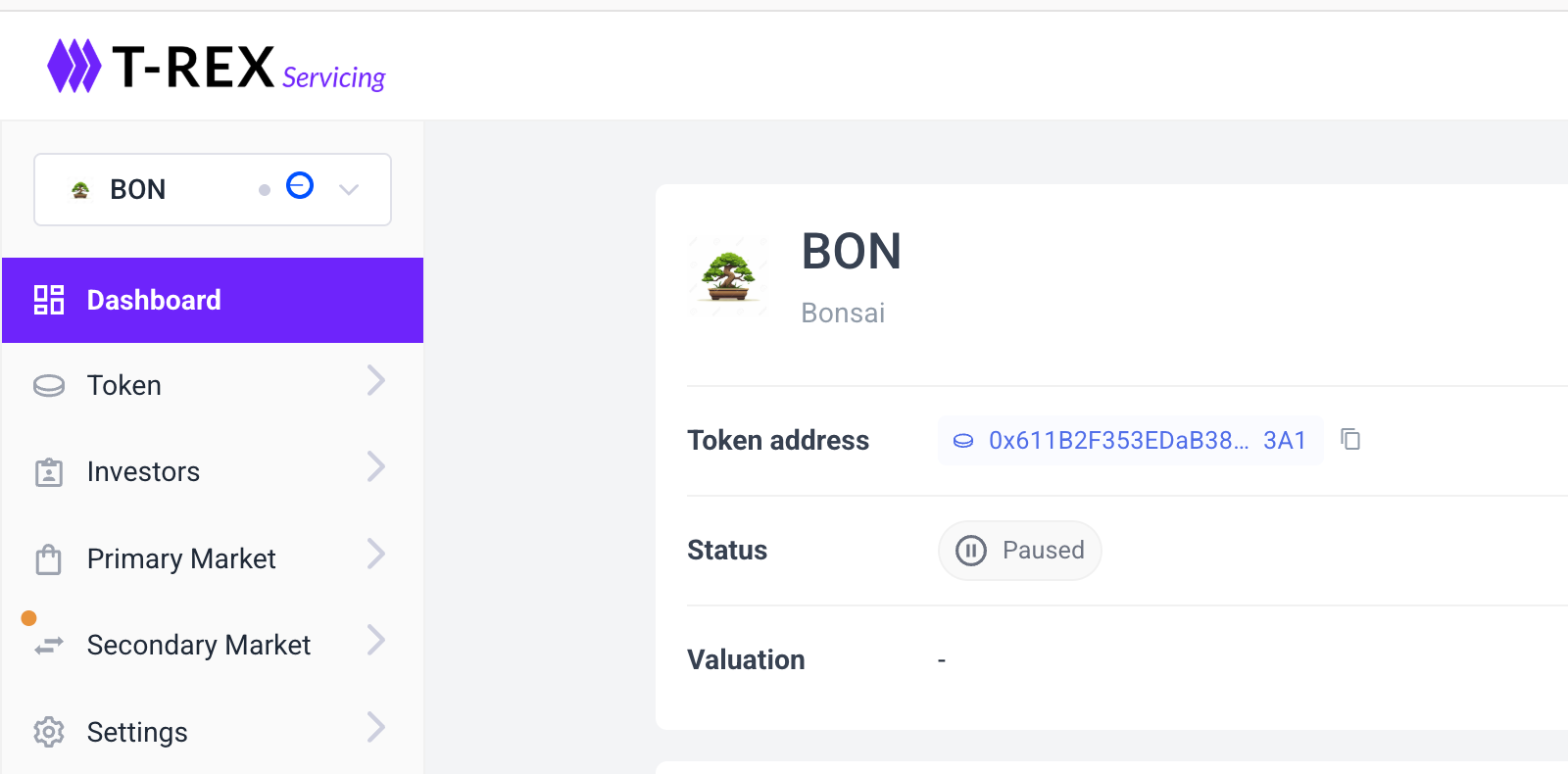 In the Servicing section of the Dashboard, you can find your Token Smart Contract Address.
