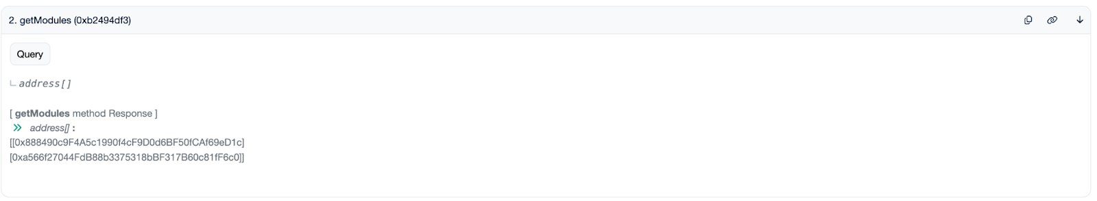 Below is the list of available modules and their addresses: