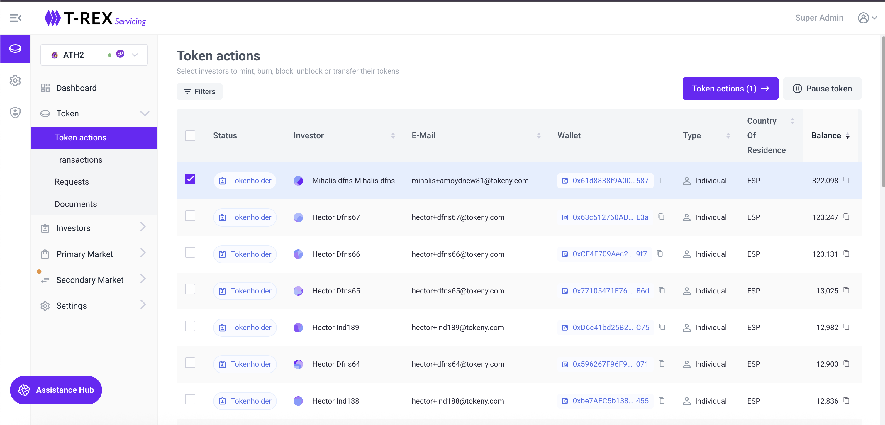You can apply to all or just to your selected investors. Once the transaction is confirmed on the blockchain, your newly minted tokens will appear in their balance.