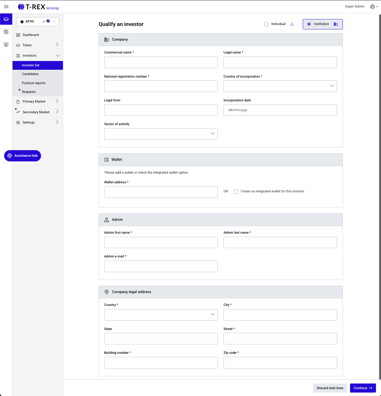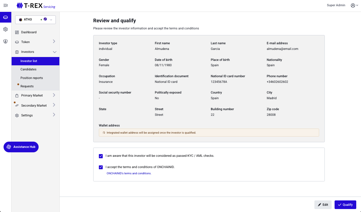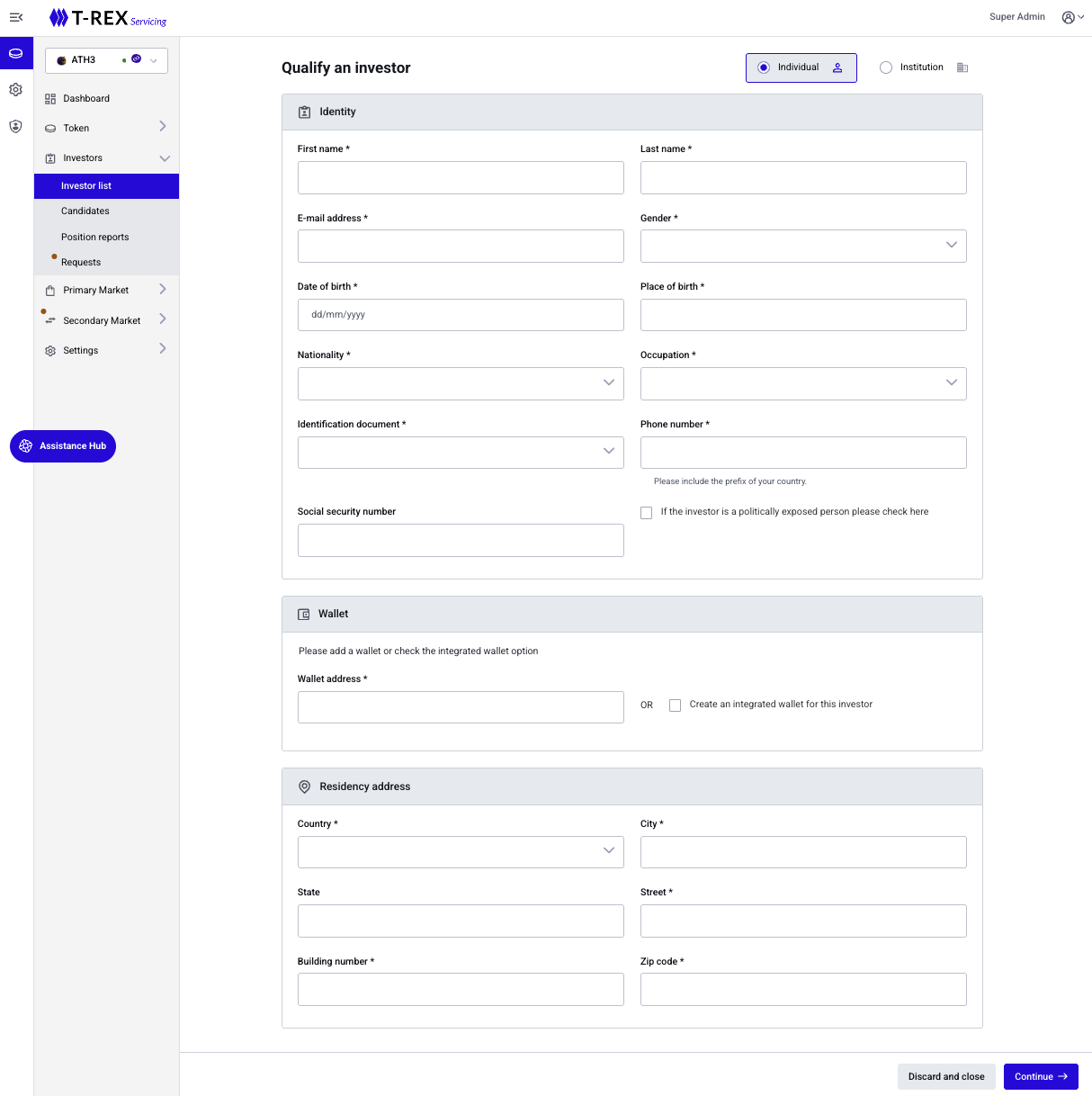 As a user for the platform, there are different roles, being the owner and the agent roles the ones that can qualify an individual or institutional investor in different ways: individually or via csv. Here we are seeing how to qualify them individually.