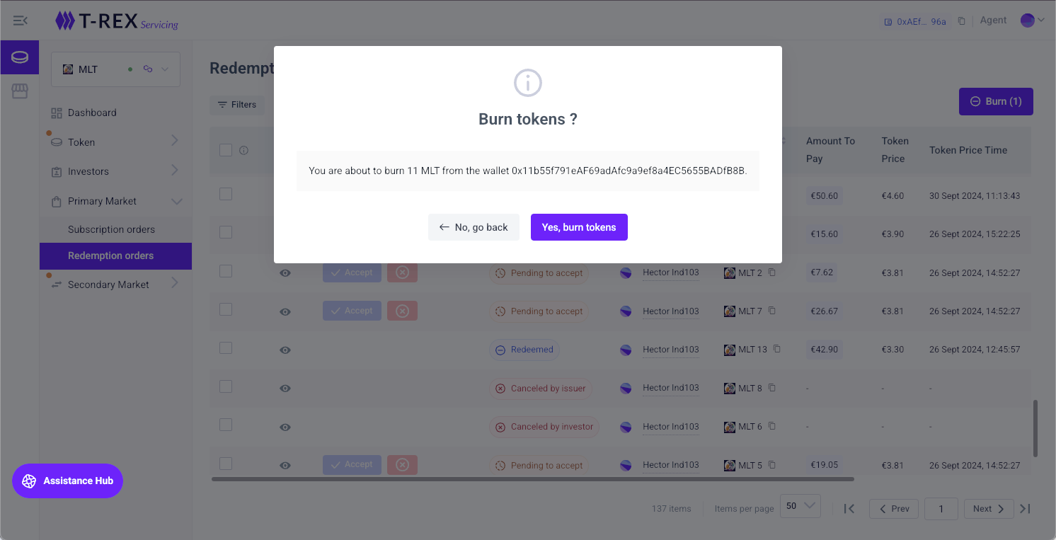 Step 1: Go to “Primary Market - Redemption orders” to select the order you want to burn.
